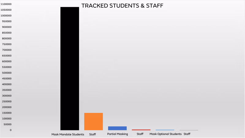 Gotovo 1.1 milijun učenika praćeno je u okruzima s obveznim nošenjem maski, dok je samo 3,950 praćeno u okruzima s neobaveznim nošenjem maski.