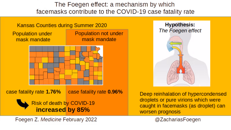 Razlog tome je ono što ja nazivam Foegenovim efektom: duboko ponovno udisanje kondenziranih kapljica ili čistih viriona koji su bili zarobljeni u maski kao kapljice može pogoršati prognozu. Svaki od ovih koraka dokumentiran je u literaturi.